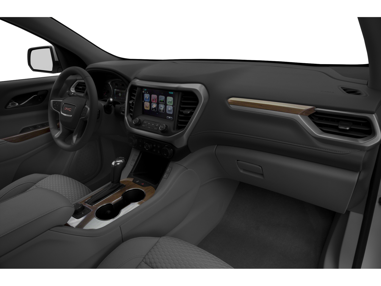 Equipped with Preferred Equipment Group 3SB, 18" x 7.5" Aluminum (4) Wheels, 3.87 Axle Ratio, 3rd row seats: split-bench, 4-Wheel Disc Brakes, 6 Speakers, 6-Passenger (2-2-2 Seating Configuration), 6-Speaker Audio System Feature, ABS brakes, Air Conditioning, Alloy wheels, AM/FM radio: SiriusXM, Apple CarPlay/Android Auto, Automatic temperature control, Brake assist, Bumpers: body-color, Compass, Delay-off headlights, Driver door bin, Driver vanity mirror, Dual front impact airbags, Dual front side impact airbags, Electronic Stability Control, Emergency communication system: OnStar and GMC connected services capable, Exterior Parking Camera Rear, Four wheel independent suspension, Front anti-roll bar, Front Bucket Seats, Front Center Armrest, Front dual zone A/C, Front fog lights, Front License Plate Bracket, Front reading lights, Fully automatic headlights, Heated door mirrors, Heated Driver & Front Passenger Seats, Heated front seats, Illuminated entry, Knee airbag, Low tire pressure warning, Occupant sensing airbag, Outside temperature display, Overhead airbag, Overhead console, Panic alarm, Passenger door bin, Passenger vanity mirror, Power door mirrors, Power driver seat, Power Liftgate, Power steering, Power windows, Premium audio system: GMC Infotainment System, Premium Cloth Seat Trim, Radio data system, Radio: AM/FM w/7" Diagonal Color Touch Screen, Rear air conditioning, Rear anti-roll bar, Rear reading lights, Rear window defroster, Rear window wiper, Remote keyless entry, Roof rack: rails only, Security system, SiriusXM Radio, Speed control, Speed-sensing steering, Spoiler, Steering wheel mounted audio controls, Stop-Start Engine Control System, Tachometer, Telescoping steering wheel, Tilt steering wheel, Traction control, Trip computer, Variably intermittent wipers, and Voltmeter.