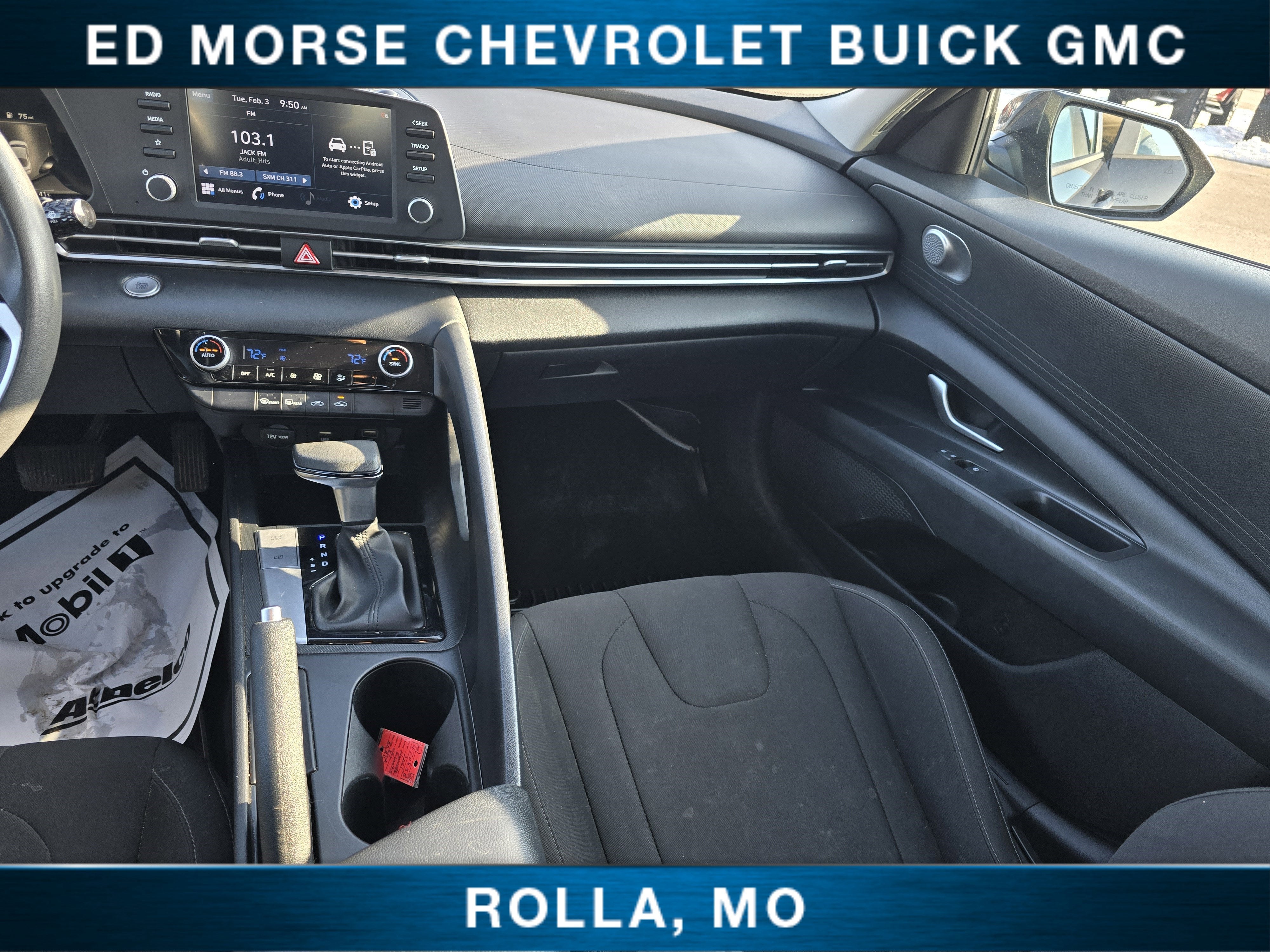 Option Group 01. 2021 Hyundai Elantra SEL Portofino Gray FWD31/41 City/Highway MPGJoin the 1.75 Million Customers and Counting ED MORSE 75 YEARS OF EXCELLENCE!Equipped with Option Group 01, 16" x 6.5J Alloy Wheels, 4-Wheel Disc Brakes, 6 Speakers, ABS brakes, Air Conditioning, Alloy wheels, AM/FM radio: SiriusXM, Apple CarPlay & Android Auto, Auto High-beam Headlights, Automatic temperature control, Brake assist, Bumpers: body-color, Cargo Net, Carpeted Floor Mats, Cloth Seat Trim, Delay-off headlights, Driver door bin, Driver vanity mirror, Dual front impact airbags, Dual front side impact airbags, Electronic Stability Control, Emergency communication system: Blue Link Connected Car Service (3-year complimentary subscription), Exterior Parking Camera Rear, Front anti-roll bar, Front Bucket Seats, Front Center Armrest, Front dual zone A/C, Front reading lights, Front wheel independent suspension, Fully automatic headlights, Illuminated entry, Low tire pressure warning, Occupant sensing airbag, Outside temperature display, Overhead airbag, Overhead console, Panic alarm, Passenger door bin, Passenger vanity mirror, Power door mirrors, Power steering, Power windows, Radio: AM/FM/HD/SiriusXM Display Audio, Rear Bumper Applique, Rear window defroster, Remote keyless entry, Security system, Speed control, Speed-sensing steering, Steering wheel mounted audio controls, Tachometer, Telescoping steering wheel, Tilt steering wheel, Traction control, Trip computer, and Variably intermittent wipers.Awards:* NACTOY 2021 North American Car of the Year
