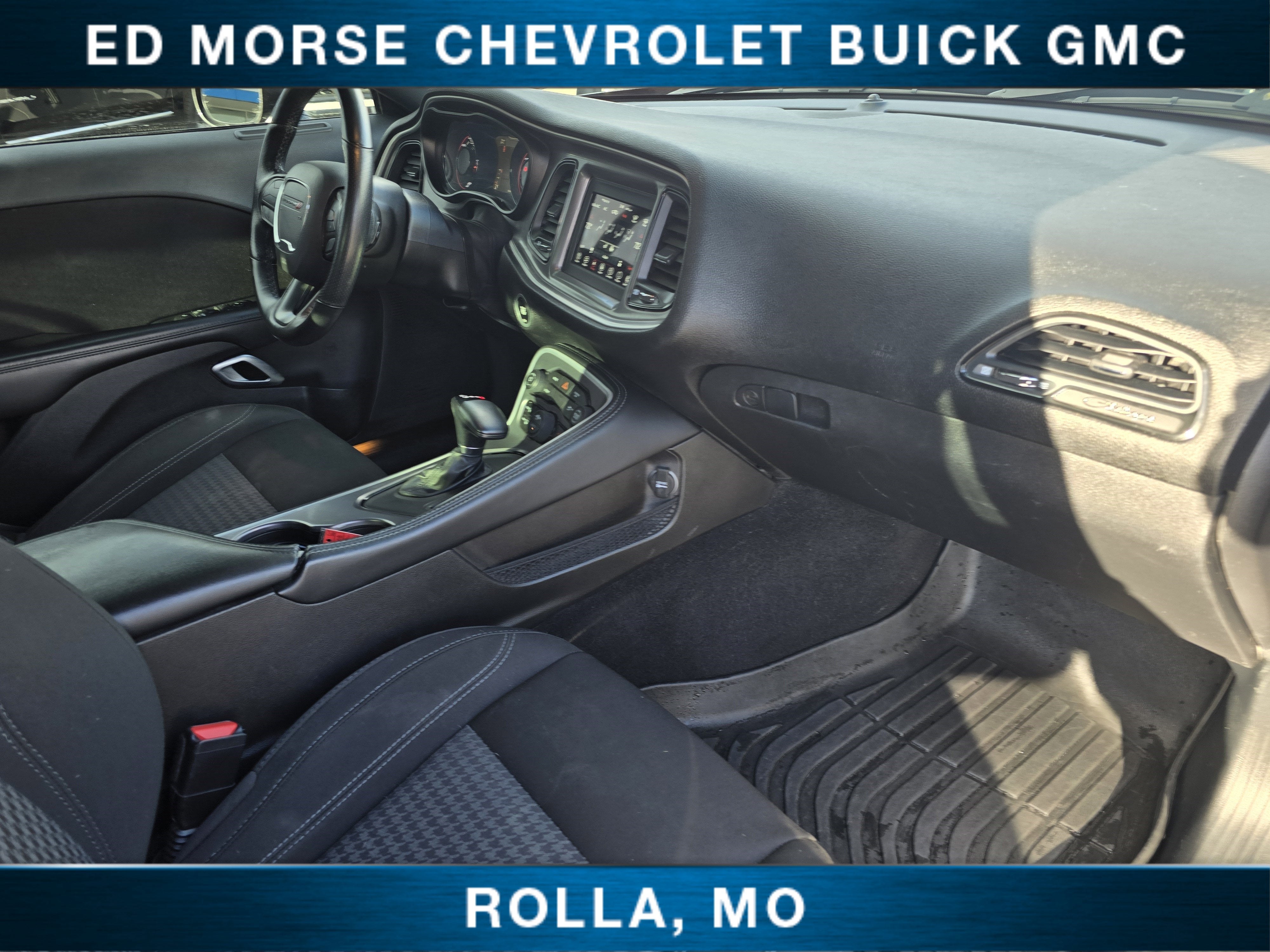Equipped with Blacktop Package (Black Fuel Filler Door, Black Grille w/Bezel, Challenger Blacktop Grille Badge, Gloss Black I/P Cluster Trim Rings, Leather Performance Steering Wheel, Rear Black Spoiler, Satin Black Dodge Tail Lamp Badge, and Wheels: 20" x 8.0" Black Noise Painted), Cold Weather Group (180 Amp Alternator, Heated Front Seats, and Heated Steering Wheel), Quick Order Package 2EA, 4-Wheel Disc Brakes, 6 Speakers, ABS brakes, Air Conditioning, Alloy wheels, AM/FM radio, Anti-whiplash front head restraints, Apple CarPlay, Apple CarPlay/Android Auto, Auto-dimming Rear-View mirror, Automatic temperature control, Brake assist, Bumpers: body-color, Compass, Compass Gauge, Delay-off headlights, Driver door bin, Driver vanity mirror, Dual front impact airbags, Dual front side impact airbags, Electronic Stability Control, Four wheel independent suspension, Front anti-roll bar, Front Bucket Seats, Front Center Armrest, Front dual zone A/C, Front License Plate Bracket, Front reading lights, Fully automatic headlights, Google Android Auto, GPS Antenna Input, Heated door mirrors, Houndstooth Cloth Sport Seat, Illuminated entry, Integrated Center Stack Radio, Integrated Voice Command w/Bluetooth®, Leather Shift Knob, Low tire pressure warning, Media Hub (2 USB, AUX), Outside temperature display, Overhead airbag, Overhead console, Panic alarm, ParkView Rear Back-Up Camera, Passenger door bin, Passenger vanity mirror, Power door mirrors, Power driver seat, Power steering, Power windows, Radio data system, Radio: Uconnect 4 w/7" Display, Rear anti-roll bar, Rear reading lights, Rear seat center armrest, Rear window defroster, Remote keyless entry, Security system, Speed control, Speed-sensing steering, Split folding rear seat, Spoiler, Steering wheel mounted audio controls, Tachometer, Telescoping steering wheel, Tilt steering wheel, Traction control, Trip computer, USB Host Flip, Variably intermittent wipers, and Wheels: 18" x 7.5" Cast Aluminum.