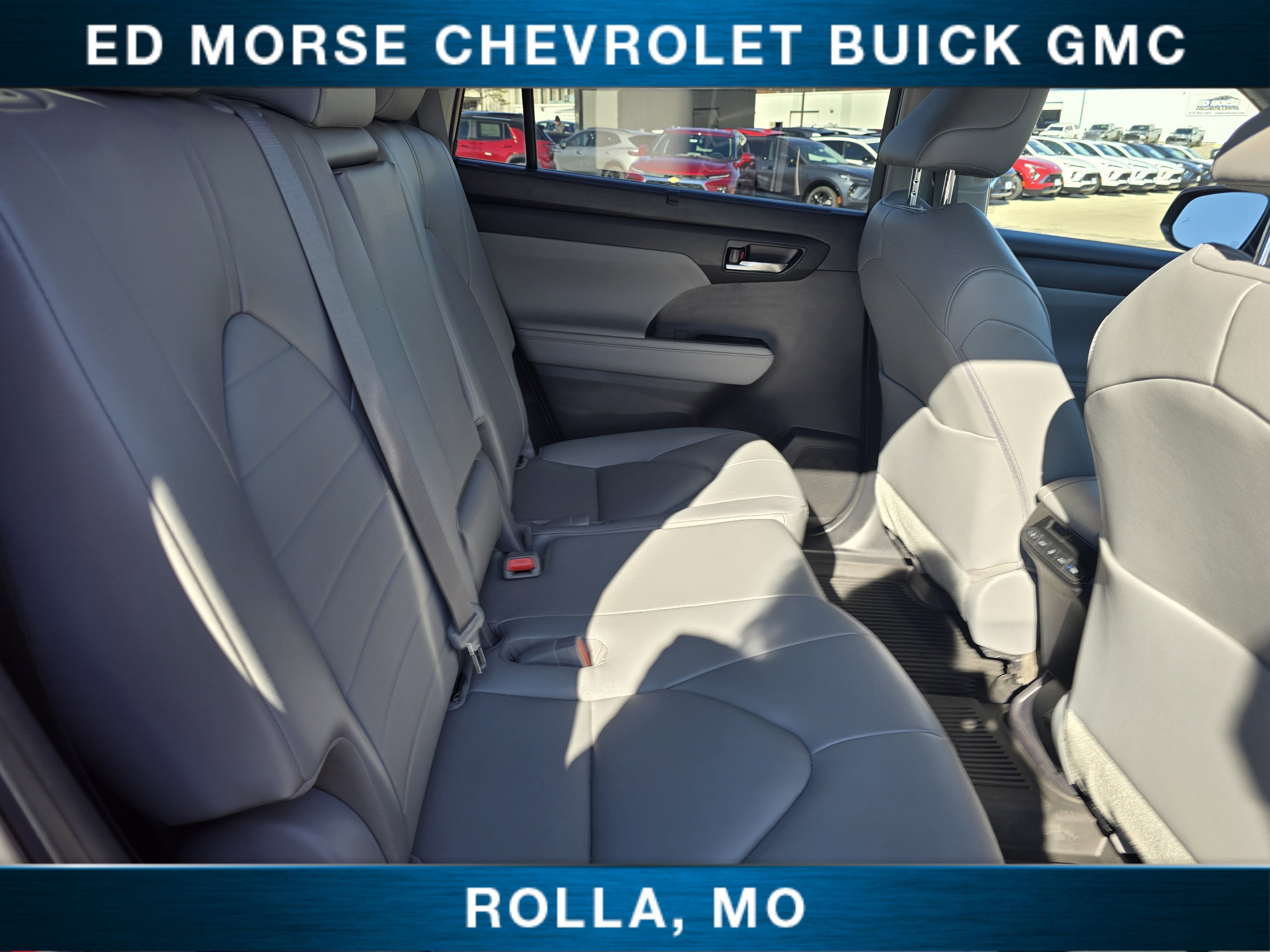 Equipped with 18" Machined Alloy Wheels, 3rd row seats: split-bench, 4-Wheel Disc Brakes, 6 Speakers, 60/40 Rear Bench Seat, ABS brakes, Air Conditioning, All Weather Floor & Cargo Liner (TMS), Alloy wheels, AM/FM radio: SiriusXM, Apple CarPlay/Android Auto, Auto High-beam Headlights, Auto-dimming Rear-View mirror, Automatic temperature control, Axle Ratio: TBD, Brake assist, Bumpers: body-color, Delay-off headlights, Door Edge Guards (TMS), Driver door bin, Driver vanity mirror, Dual front impact airbags, Dual front side impact airbags, Electronic Stability Control, Emergency communication system: Safety Connect (up to 10-year trial subscription), Exterior Parking Camera Rear, Four wheel independent suspension, Front anti-roll bar, Front Bucket Seats, Front Center Armrest, Front dual zone A/C, Front fog lights, Front reading lights, Fully automatic headlights, Garage door transmitter: HomeLink, Heated door mirrors, Heated Front Bucket Seats, Heated front seats, Illuminated entry, Knee airbag, Leather Shift Knob, Leather steering wheel, Low tire pressure warning, Occupant sensing airbag, Outside temperature display, Overhead airbag, Overhead console, Panic alarm, Passenger door bin, Passenger vanity mirror, Power door mirrors, Power driver seat, Power Liftgate, Power moonroof, Power passenger seat, Power steering, Power windows, Radio: 8" Toyota Audio Multimedia, Rear air conditioning, Rear anti-roll bar, Rear reading lights, Rear window defroster, Rear window wiper, Reclining 3rd row seat, Remote keyless entry, Roof rack: rails only, Security system, SofTex Seat Trim, Speed control, Speed-sensing steering, Split folding rear seat, Spoiler, Steering wheel mounted audio controls, Telescoping steering wheel, Tilt steering wheel, Tow Hitch (TMS), Traction control, Trip computer, Turn signal indicator mirrors, and Variably intermittent wipers.